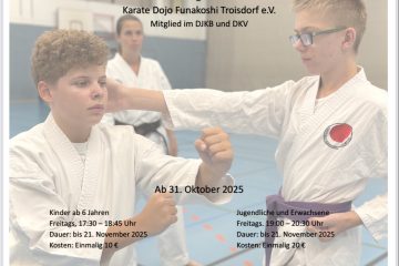 In diesem Jahr bieten wir ein gemeinsames Sommertraining mit der Karateschule Troisdorf e.V. an. Das Training beginnt am 29.07.25[…]