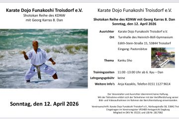 Shotokan Reihe des KDNW mit Georg Karras Ausrichter: Karate Dojo Funakoshi Troisdorf e.V. Turnhalle des Heinrich-Böll-Gymnasium, Edith-Stein-Straße 15, 53844[…]